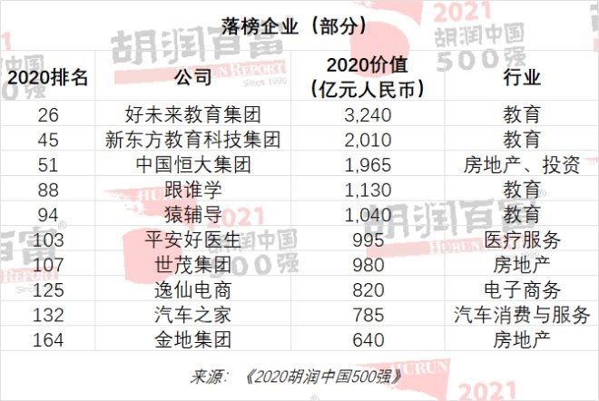 值得注意的是,180家上一年榜單上的企業(yè)今年落榜,包括好未來(lái)、新東方、恒大、金地等。