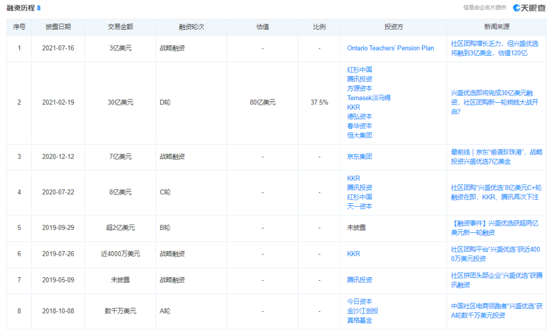 而在2020年7月至2021年7月的關(guān)鍵階段,興盛優(yōu)選連續(xù)獲得4輪累計48億美元的融資。