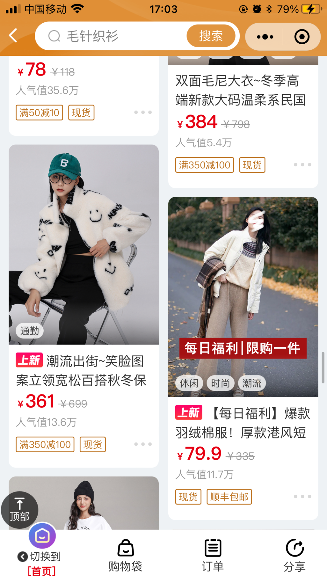 興盛優(yōu)選新增了服裝類目,上線了大量女裝款式,覆蓋年輕用戶至中年群體。