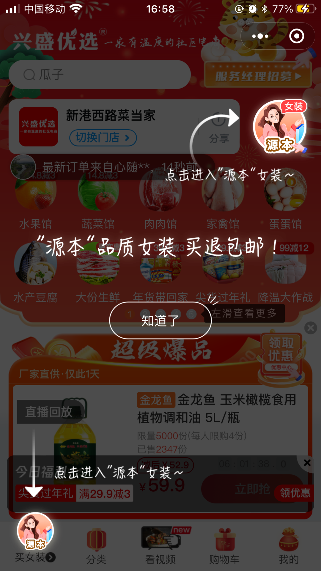 新增女裝之前,興盛優(yōu)選的主打品類是水果、蔬菜、肉禽蛋水產(chǎn)豆腐、牛奶、農(nóng)副、烘焙糕點(diǎn)、以及一些家居日用品。