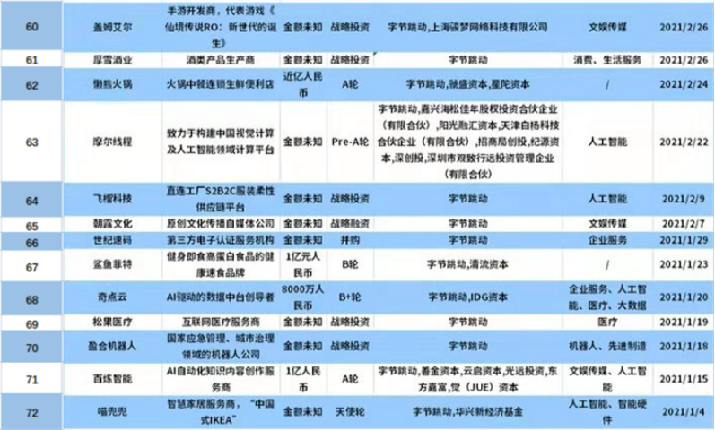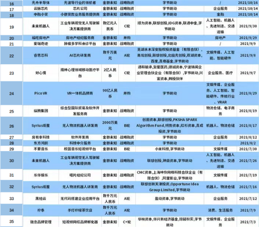 字節(jié)跳動(dòng)2021年在各領(lǐng)域的投資數(shù)量