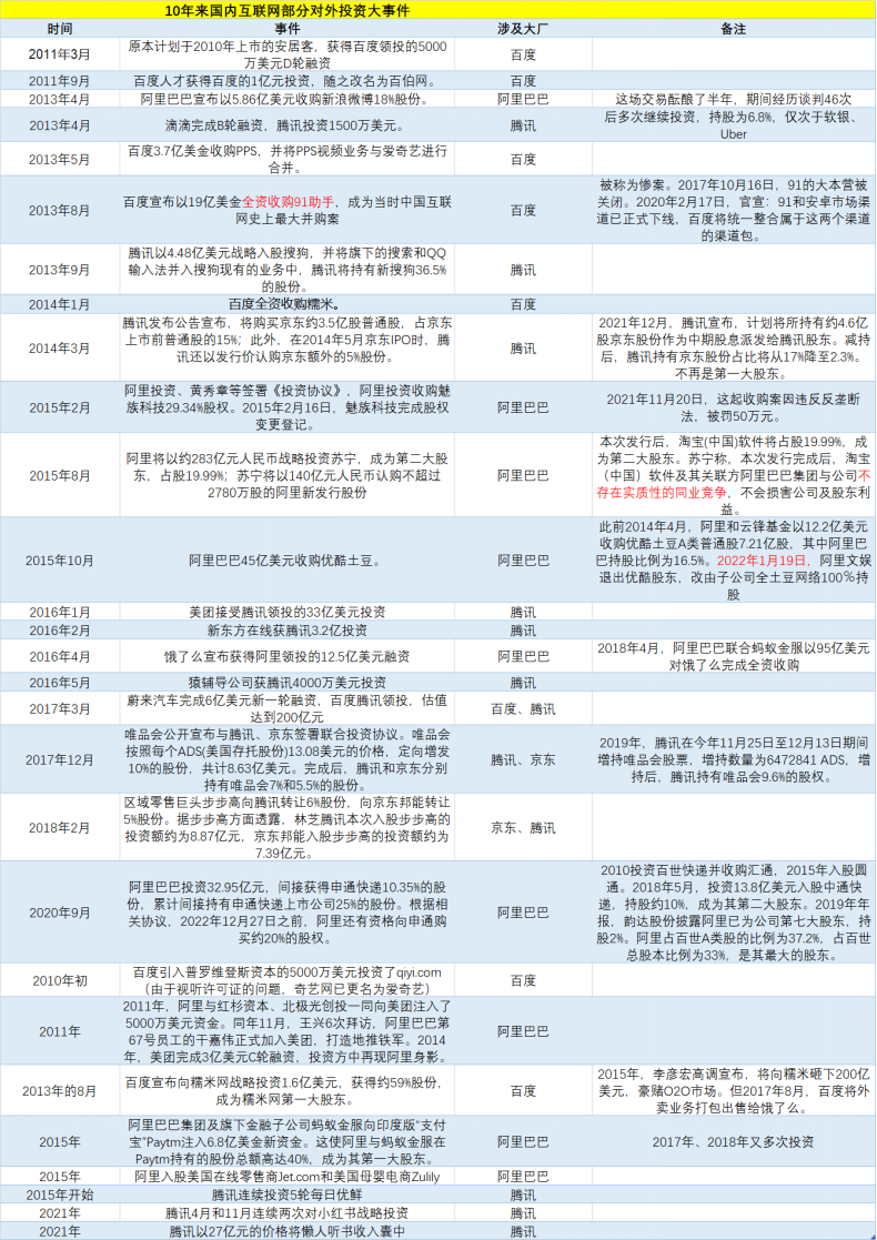 事實(shí)上,互聯(lián)網(wǎng)一線公司的戰(zhàn)略與投資密切相關(guān)。除了字節(jié)外,騰訊、阿里、京東、百度、美團(tuán)、小米等企業(yè)內(nèi)部均設(shè)有投資相關(guān)部門。這些部門曾經(jīng)的核心工作,便是通過兼并收購,讓各自的版圖更完整。