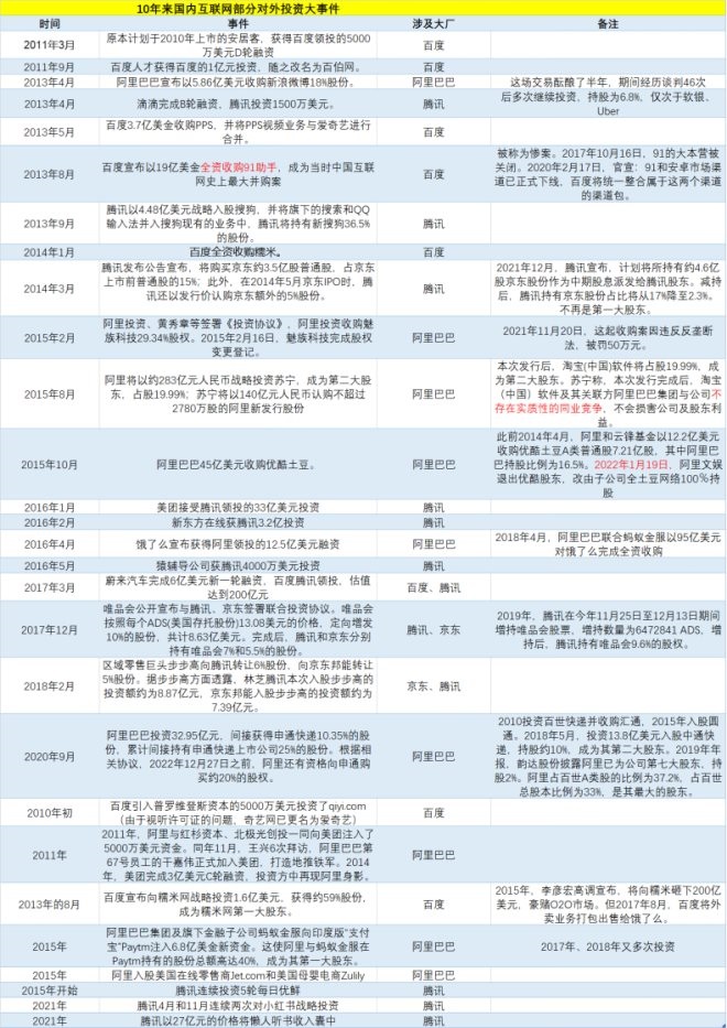 事實上,互聯(lián)網(wǎng)一線公司的戰(zhàn)略與投資密切相關。除了字節(jié)外,騰訊、阿里、京東、百度、美團、小米等企業(yè)內(nèi)部均設有投資相關部門。這些部門曾經(jīng)的核心工作,便是通過兼并收購,讓各自的版圖更完整。