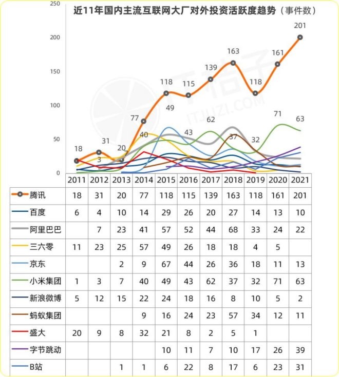 類似擴張,最初騰訊主要圍繞游戲和企業(yè)服務領域,小米則偏重先進制造和智能硬件,而阿里更關注醫(yī)療健康和汽車交通領域,早期大廠的觸角還是基于自己的領域,鞏固自己的城墻。