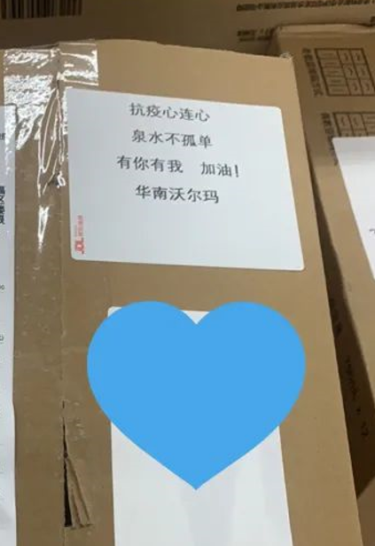 (高慶誼):保供期間,門店在包裹上貼上“抗疫心連心,泉水不孤單,有你有我,加油”的暖心小紙條。