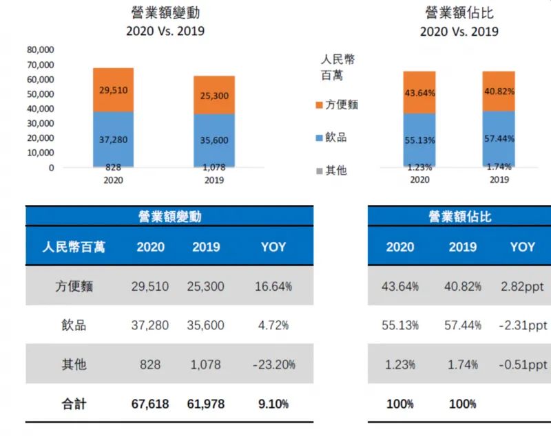 康師傅2019年與2020年銷量對(duì)比,圖/康師傅財(cái)報(bào)