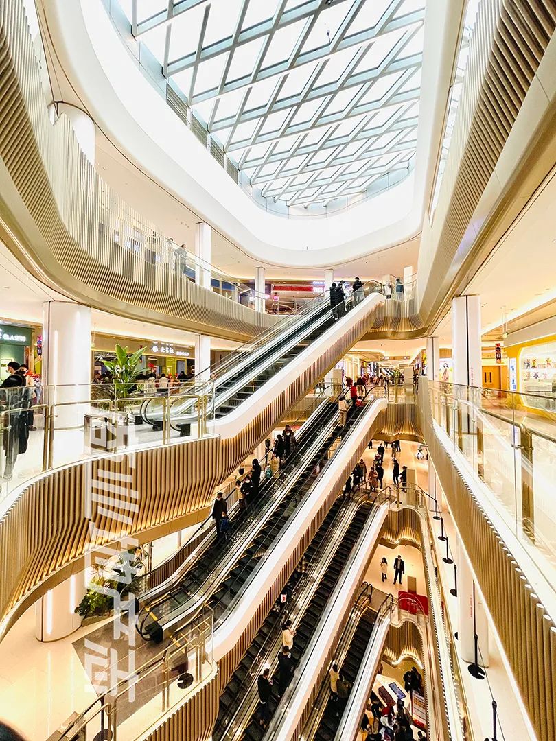 柵欄狀的圍擋裝飾十分搶眼,大量被用在扶梯、中庭等區(qū)域,定制程度也足夠深,容易讓人留下深刻的印象。