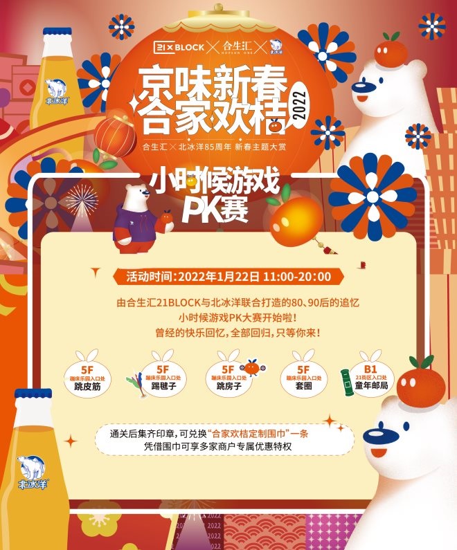 盡管不可避免地受到了疫情的影響,但過年仍舊是中國人心目中的情感共鳴。由此,合生商業(yè)聯(lián)合北冰洋用心打造了一個「京味新春·合家歡桔」新春主題活動。