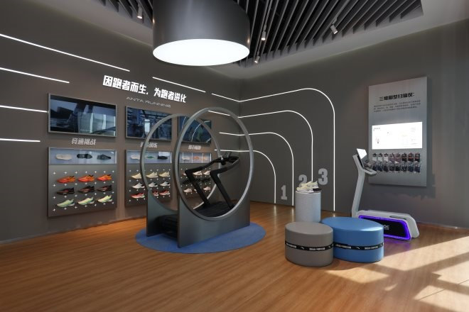 在982安踏創(chuàng)動空間里,可以呈現(xiàn)在南方感受北方的零下10度的冷,通過黑科技熱成像技術(shù),精確選擇“恰好”保暖的羽絨服;足部3D掃描,結(jié)合大數(shù)據(jù)庫匹配全品牌最適合自己的跑鞋,試跑無動力跑步機,真實還原戶外跑步感受;把滑雪場、攀巖壁搬到門店,并提供專業(yè)教練的指導;構(gòu)建全息籃球場,還有互動式全媒體場景,幫助針對性提升運動表現(xiàn)。
