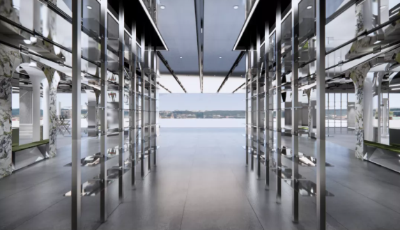 特別設(shè)計的機械電機系統(tǒng)和動感藝術(shù)裝置立面融入古舊的樓體結(jié)構(gòu),鏡面材料和傳感裝置豐富了歷史的骨骼;以高科技和裝置堆疊起店內(nèi)標志性雕塑,也得以讓現(xiàn)代科技與舊時雕梁琴瑟和弦,為整座禪院換上了一幅“全新容顏”。