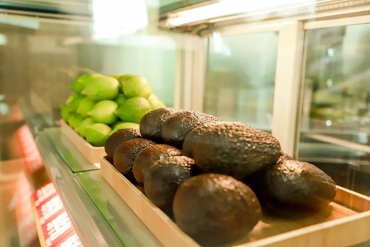 吧臺櫥窗內(nèi)展示新鮮牛油果