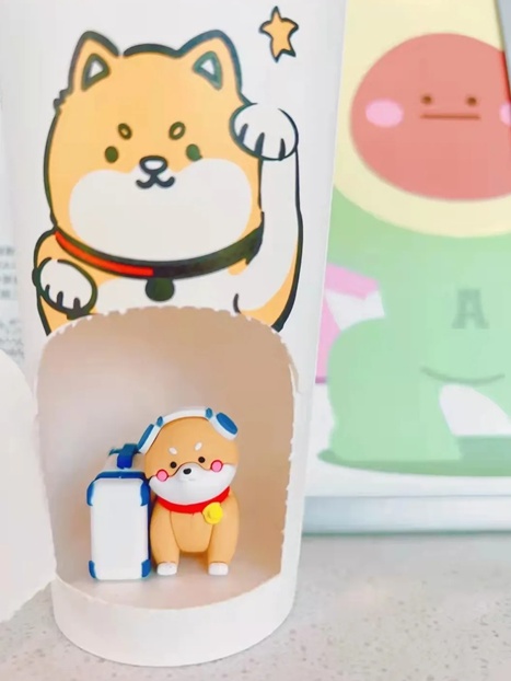 二是推出盲盒系列,門店限定,每款盲盒奶茶附贈一只柴犬擺件,一共5款造型。