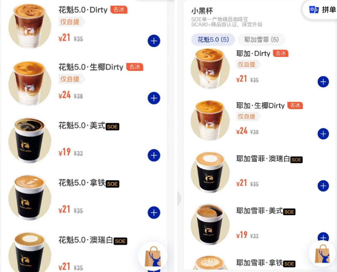這不是瑞幸第一次把精品咖啡“拉下神壇”了。2020年,瑞幸推出精品級(jí)SOE(Single Origin Espresso,即單一產(chǎn)區(qū)咖啡豆制作的濃縮咖啡)限定耶加雪菲美式和拿鐵,耶加雪菲正是高品質(zhì)咖啡豆阿拉比卡的子品種之一,同樣來自埃塞俄比亞,SCA評(píng)分在80+。