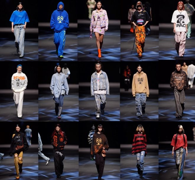 2021年10月,metersbonwe 在上海西岸穹頂藝術中心「鋒芒新生」發(fā)布2022春夏系列。大秀用“強烈”、“對撞”、“出跳”的呈現(xiàn)方式打破美學邊界,為 Z 世代的酷小孩們打造了一場時裝奇觀。