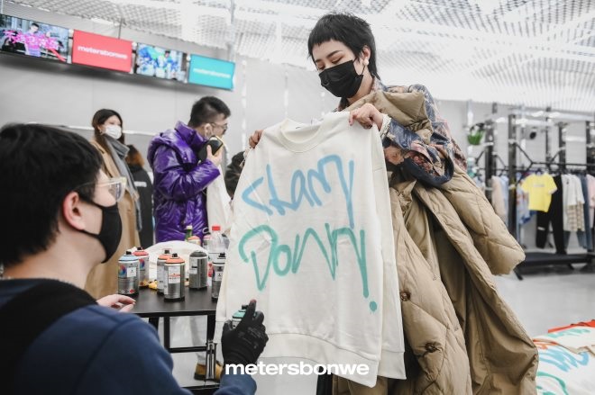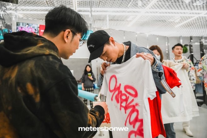 于此同時,為延續(xù) metersbonwe 2022 春夏大秀中鼓勵 Z 世代酷小孩想象力與 DIY 精神的宗旨,「上海千樹先鋒概念店」在活動現(xiàn)場聯(lián)合頂尖藝術家在店內(nèi)提供涂鴉定制與DIY活動。