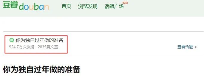 豆瓣上“你為獨自過年做的準備”成為熱門話題,已經(jīng)得到924.7萬次瀏覽,大家開始分享各種美好的規(guī)劃。