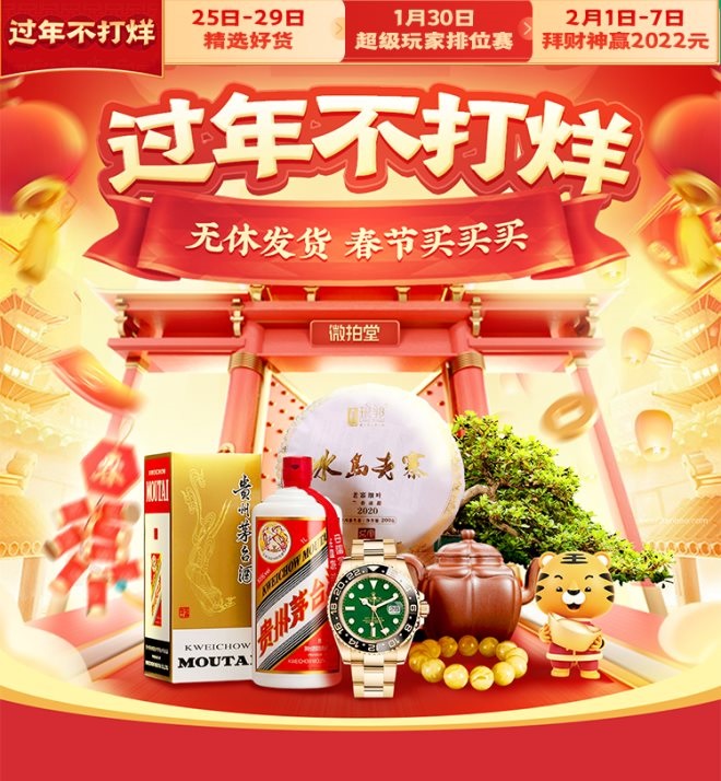 日前,為響應(yīng)春節(jié)期間政府防疫政策,滿足春節(jié)期間民眾的網(wǎng)購需求,發(fā)揮電商平臺保障民生作用,體現(xiàn)企業(yè)責(zé)任擔(dān)當(dāng)?shù)木,微拍堂再次啟動“過年不打烊”活動,為廣大文玩藝術(shù)品愛好者提供一場春節(jié)文化消費盛宴。