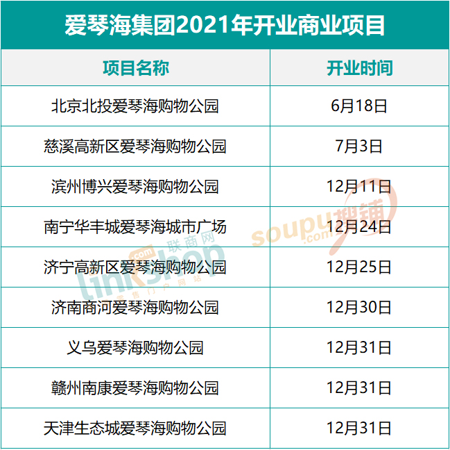 2021年,愛琴海集團(tuán)共新開9個商業(yè)項目,其中8座愛琴海購物公園、1座愛琴海城市廣場,大連福佳愛琴海購物公園也在2021年7月煥新升級后重新開業(yè)。除了北京北投和慈溪高新區(qū)兩座愛琴海購物公園外,其他項目均集中在12月開業(yè)。且諸如贛州愛琴海購物公園等項目為城市首進(jìn)。