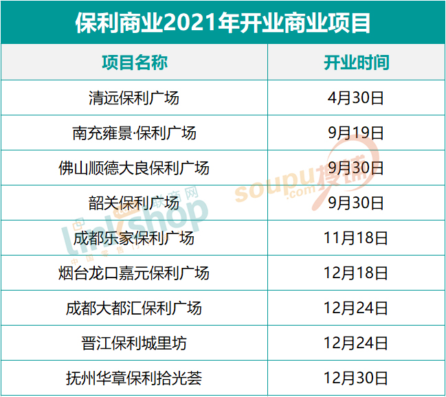 2021年,在聯(lián)商網(wǎng)統(tǒng)計的數(shù)據(jù)中,保利商業(yè)全年開業(yè)商業(yè)項目9個,且主要以保利廣場為主。整體上看,保利商業(yè)持續(xù)深耕大本營廣東區(qū)域,在佛山、清遠(yuǎn)、韶關(guān)新開4座優(yōu)質(zhì)保利廣場,充分顯示出保利商業(yè)的品牌聯(lián)發(fā)優(yōu)勢以及運營實力。