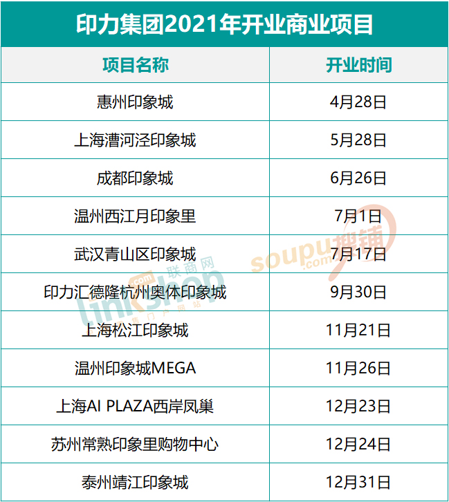 印力2021年新開了11個商業(yè)項目,除印象匯外,其余三天產(chǎn)品線均有項目開業(yè),且繼上海南翔印象城MEGA外,全國第二座印象城MEGA也在溫州得以亮相。
