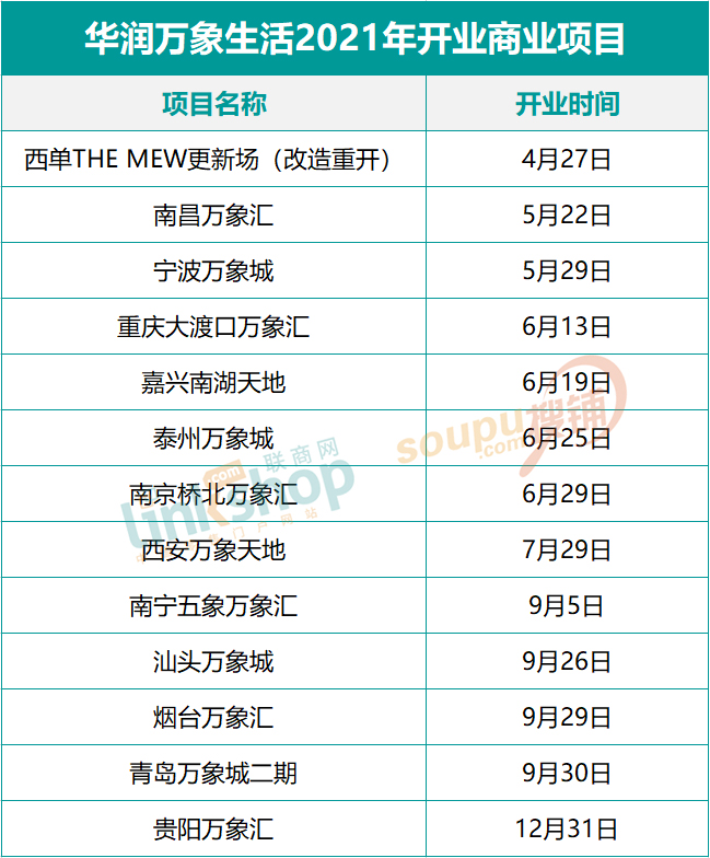 分拆獨立上市后,華潤萬象生活更加游刃有余,在萬象城、萬象匯、萬象天地三條成熟產(chǎn)品線的“護(hù)航”下,2021年全年新開商業(yè)項目高達(dá)14個(包括一個存量改造物業(yè)北京西單更新場),且實現(xiàn)了對多個城市的首進(jìn)突破,華潤萬象生活2021年分別突破了貴陽、南京、南昌等6個城市。
