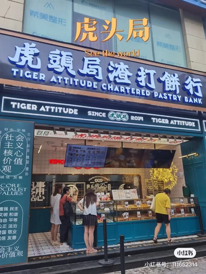 而當(dāng)傳統(tǒng)烘焙也披上國潮的新衣,仿佛哈利波特騎著魔法掃帚飛:在小紅書上,墨茉點心局有1.3萬多篇相關(guān)筆記,虎頭局有1萬多篇筆記,瀘溪河有2萬多篇筆記,年輕人愿意為之排隊5-6個小時.....