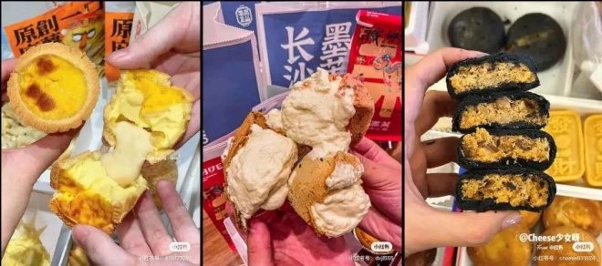 從左到右依次為虎頭局的盤撻、墨茉的爆漿麻薯、點金獅的肉松餅 圖源:小紅書