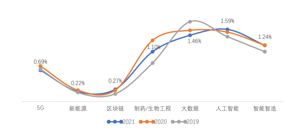 2021年重大戰(zhàn)略新興產(chǎn)業(yè)相關的行業(yè)競爭熱度也持續(xù)維持高位(圖4)。其中,人工智能、智能制造同比逐年提升。說明人才越來越關注重點技術(shù)領域發(fā)展。