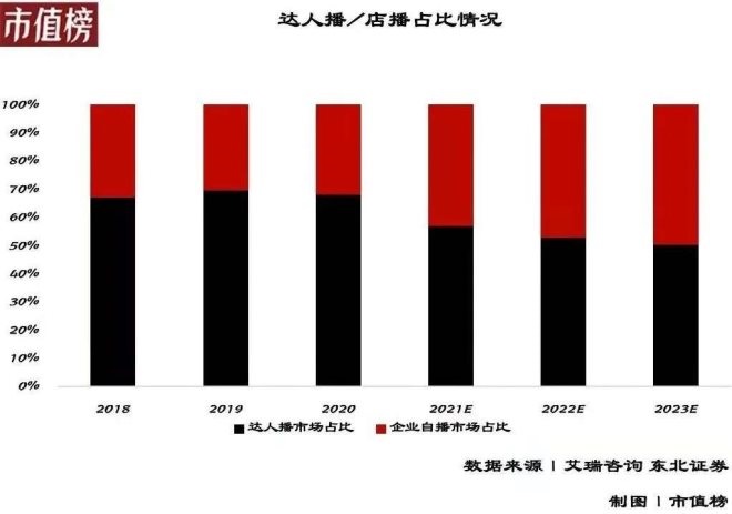 艾瑞咨詢數(shù)據(jù)顯示,2020年商家自播成交額占整體直播電商的32.1%,預(yù)計到2023年占比將接近50%。