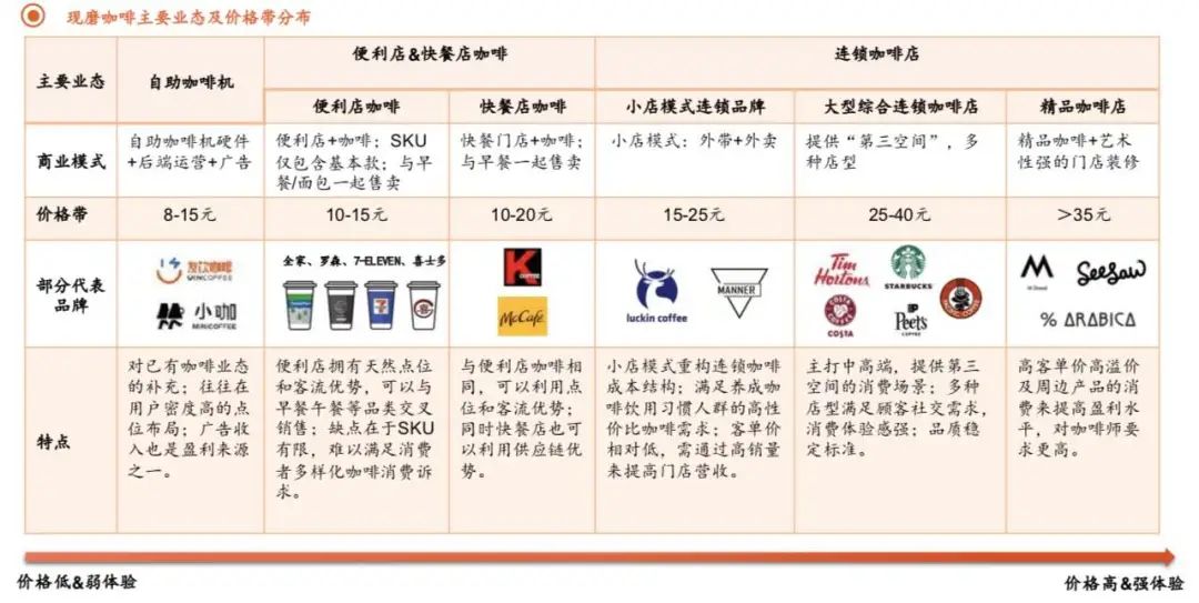 在中國現(xiàn)磨咖啡市場上,售價在4-14元之間的幸運咖,切入的是一個幾乎空白的價格帶。這要遠低于瑞幸、Manner等一二線城市平價精品咖啡所處的15-25元價格帶,大部分產(chǎn)品甚至比10-15元的全家、羅森等便利店咖啡還要便宜。