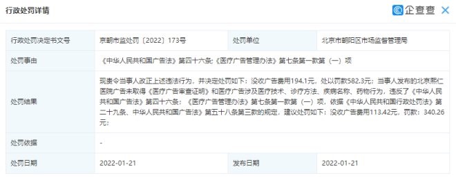樂(lè)視網(wǎng)醫(yī)療廣告違法被罰920元 被執(zhí)行總金額92.57億