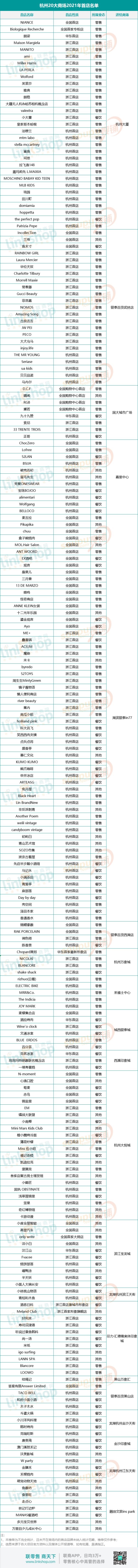 附杭州20大商場(chǎng)2021年首店品牌名單:
