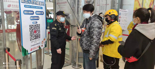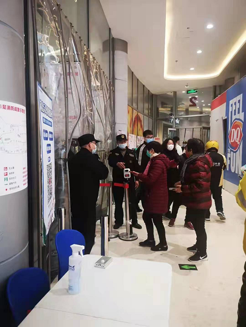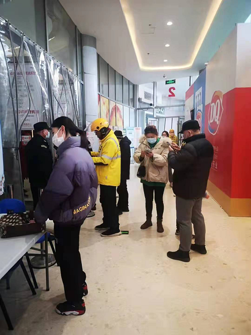 在人員分配上,公司組織全體黨員干部以及積極參與志愿者活動的團員青年在客流高峰時間段,替換門口保安,為進入商場的消費者測量體溫、查看健康碼,并將密集人群分散開來,不僅讓工作人員擁有足夠的休息時間,而且也大大提升防控的工作效率。