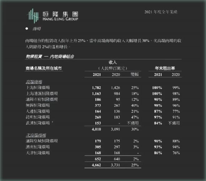 恒隆內(nèi)地十大商場2021年租金總收入超46億