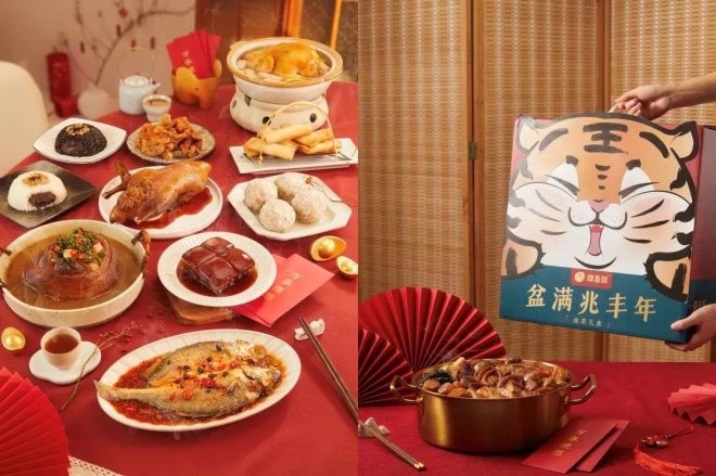 據(jù)悉,理象國此次上線的虎年限量版“年菜系列禮盒”,包含年菜禮盒、盆菜禮盒和金湯佛跳墻禮盒。其中,年菜禮盒與四派菜系大師聯(lián)名煎制,囊括香辣紅火黃花魚、鴻運(yùn)酒悶東坡肉、淮揚(yáng)清燉獅子頭等十道年菜;盆菜禮盒聚集了鮑魚、海參、鱈魚花膠、廣式燒肉與白切雞等珍饈美味。