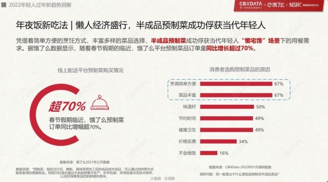 從70、80后占據(jù)廚房主力,到90后、95后逐漸接過年夜飯的主導(dǎo)權(quán),預(yù)制菜成為了下一個新生活方式的“風(fēng)向標(biāo)”。