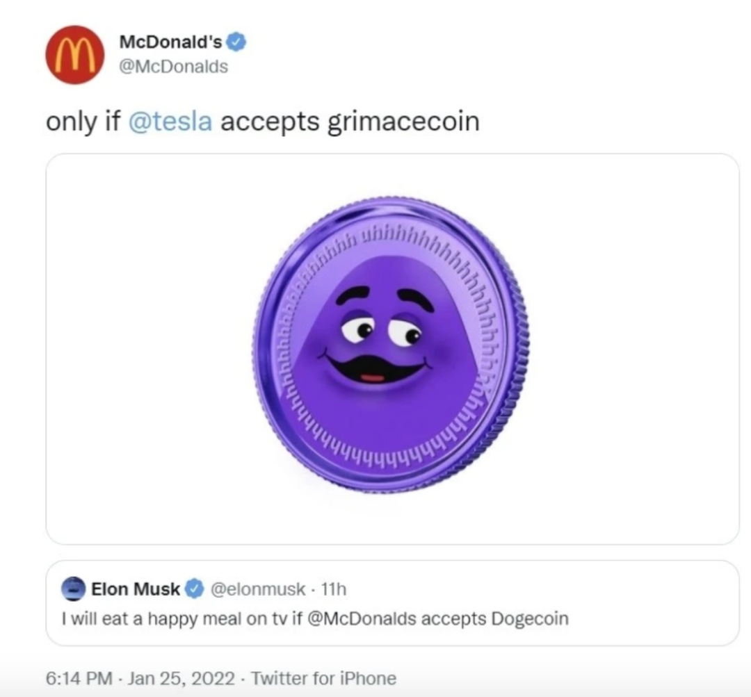 麥當(dāng)勞當(dāng)即回復(fù):“除非特斯拉接受鬼臉幣!