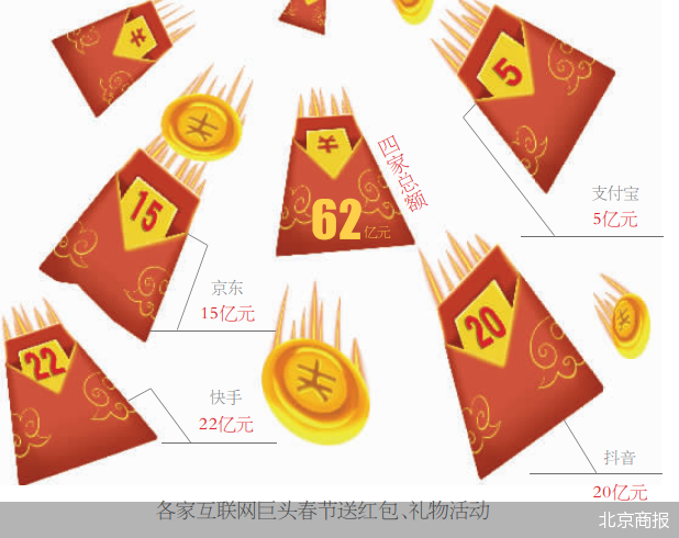 易觀高級分析師蘇筱芮告訴北京商報記者,春節(jié)紅包背后是“注意力經(jīng)濟”的一種折射。互聯(lián)網(wǎng)巨頭既有科技優(yōu)勢,又有流量優(yōu)勢,借助春節(jié)這樣的重要節(jié)日氛圍與龐大的消費需求,結合紅包場景進行獲客,能夠吸引用戶的注意,進而發(fā)力流量變現(xiàn)。