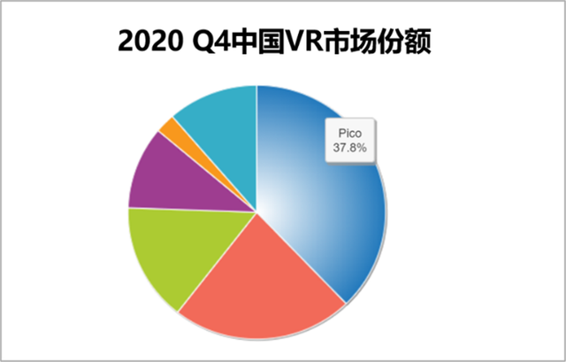 IDC的報告顯示,2020年P(guān)ico在中國國內(nèi)VR一體機市場排名第一,2020年Q4市場份額高達(dá)57.8%。