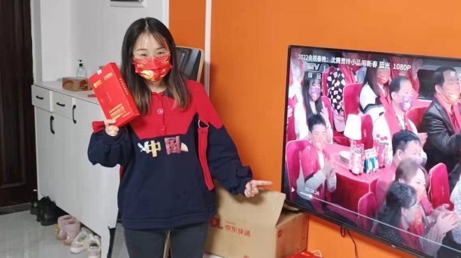 (圖:除夕當(dāng)晚,貴州省畢節(jié)市的李女士收到京東快遞送來的春晚第一單實(shí)物獎(jiǎng)品)