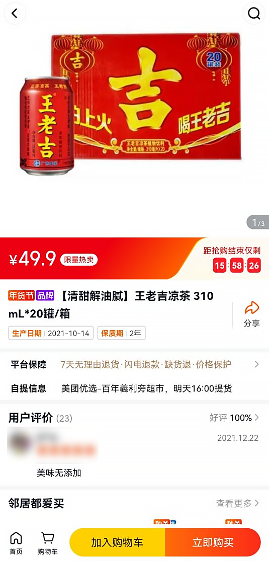 然而,12罐一箱的百家姓王老吉賣到了99元,這跟普通王老吉20罐一箱最低49.9元的平臺價相比,單罐價格貴了3.2倍。
