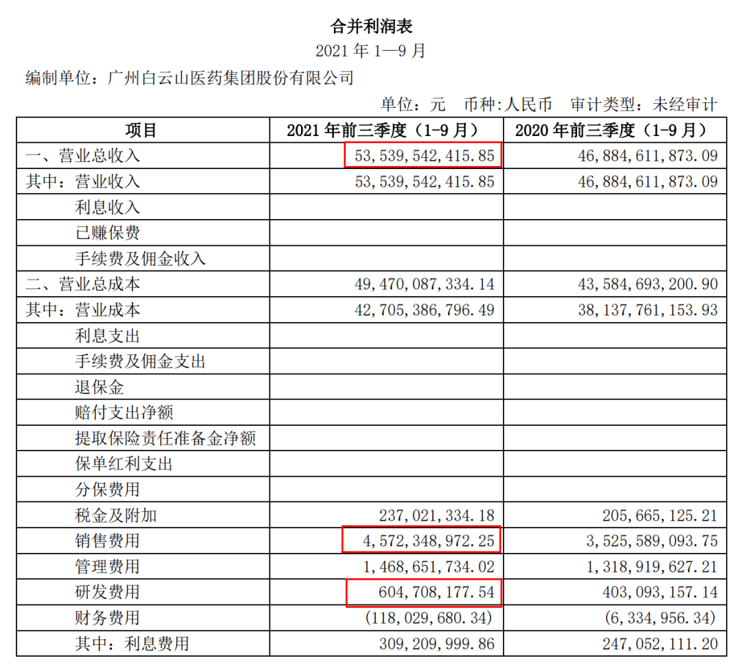 醫(yī)藥媒體“藥事縱橫”統(tǒng)計了2021年前三季度在股票市場上市的70余家國內(nèi)制藥企業(yè)研發(fā)投入占比的情況,其中白云山排到了60多位。