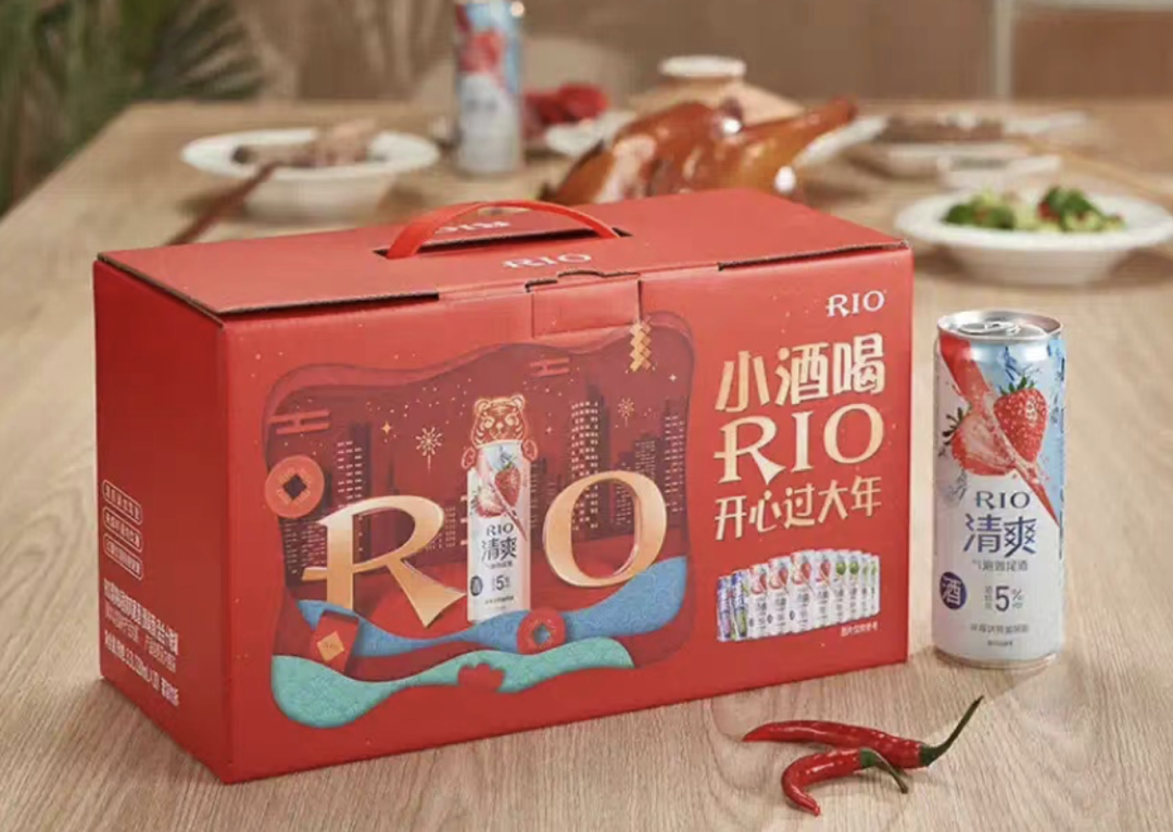 低度酒不甘示弱,RIO雞尾酒就推出了春節(jié)款年貨禮盒,試圖在“春節(jié)檔”中分一杯羹。