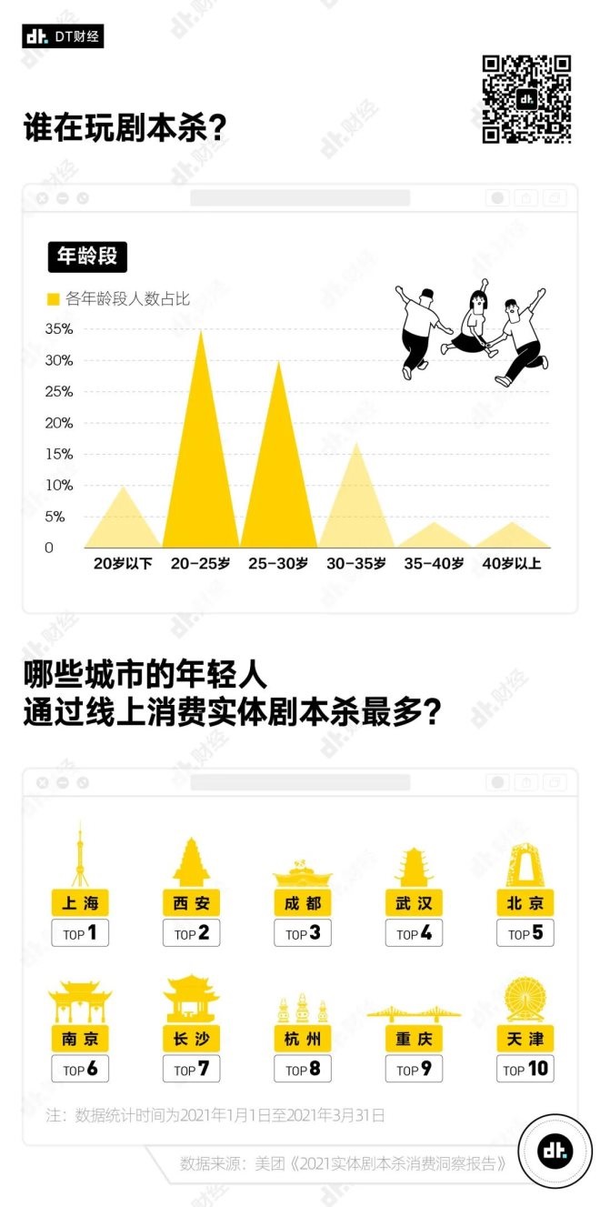 誰在為劇本殺貢獻(xiàn)熱度呢?據(jù)美團(tuán)《2021實體劇本殺消費洞察報告》,劇本殺不僅在一線和沿海城市流行,還俘獲了眾多中西部新一線城市年輕人的心——可以光榮劃入青年大眾娛樂活動范疇。