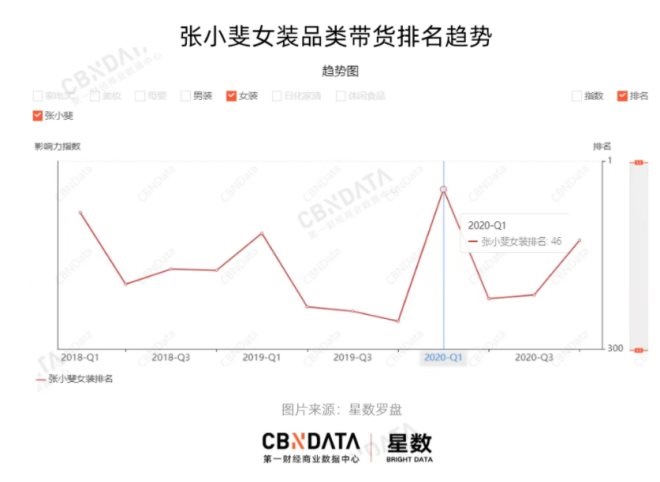 前者當(dāng)年頗得我大姨的歡心,或許顏色不如今年的孔雀藍(lán)低調(diào)好駕馭并未引起太大波瀾,但日?畎酌乱l(fā)一波種草。據(jù)星數(shù)羅盤數(shù)據(jù)顯示,2020年春晚期間張小斐的帶貨影響力指數(shù)達(dá)到峰值。