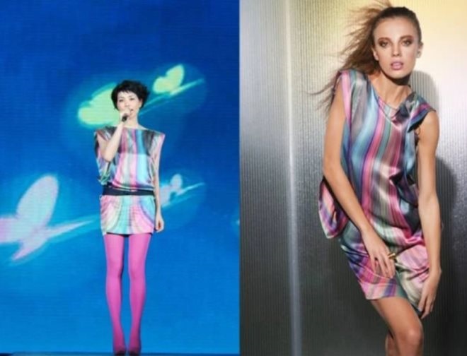 2010年的Prada桃粉色羊毛大衣配藍(lán)色褲襪,溫婉而不失甜辣。這件造價(jià)近3萬(wàn)的大衣當(dāng)年也曾引起不小輿論,“別告訴我是阿依蓮就行”。