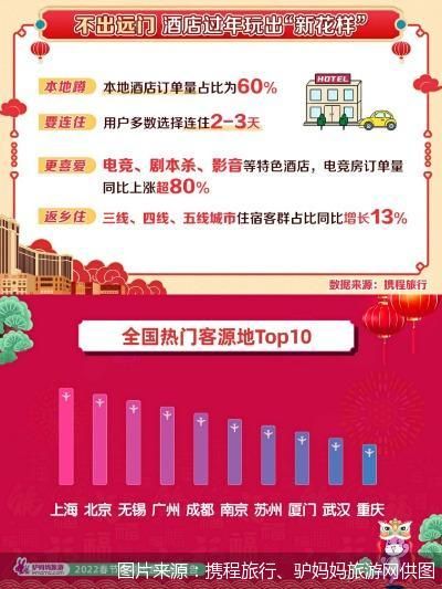 同樣,同程旅游方面的數(shù)據(jù)也顯示,在酒店預(yù)訂方面,今年春節(jié)的反向探親客流疊加本地出行需求,本地的酒店預(yù)訂占比高達(dá)46%!罢频辍背蔀槌鞘腥巳航哟聪蛱接H的家人,以及城市居民享受年節(jié)氛圍的新選擇。