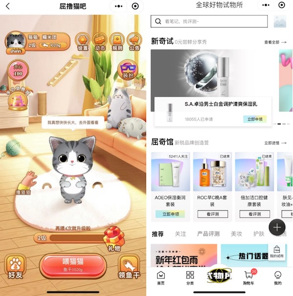 屈臣氏以年輕人興趣為發(fā)力點(diǎn),近年來(lái)推出虛擬偶像“屈晨曦”、云養(yǎng)寵物“屈奇貓”,不斷提升小程序的二次元、萌系指數(shù),打造更有活力的年輕社交互動(dòng)。同時(shí)利用企業(yè)微信、社群貫穿用戶工作、生活、度假等多個(gè)場(chǎng)景,釋放品牌社交營(yíng)銷能力,有效延展用戶生命周期。
