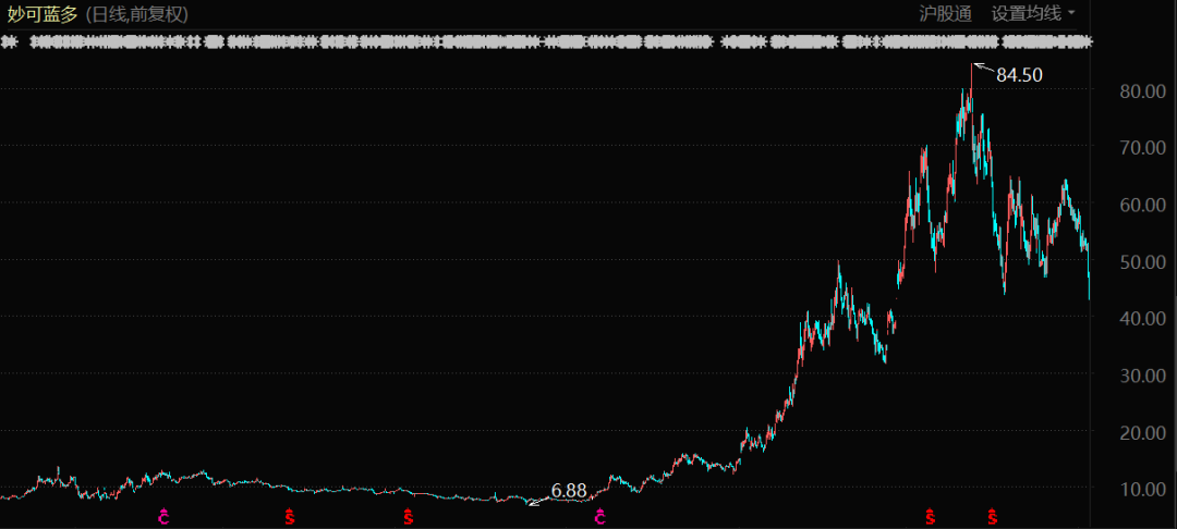 很多人曾質(zhì)疑妙可藍(lán)多洗腦式廣告的燒錢(qián)起家模式,然而幾年之后,妙可藍(lán)多真的打開(kāi)了中國(guó)奶酪企業(yè)的局面,股價(jià)也隨之“開(kāi)掛”,從2019年初的8元左右一路上升到去年最高84.5元,實(shí)現(xiàn)了近10倍的增長(zhǎng)。