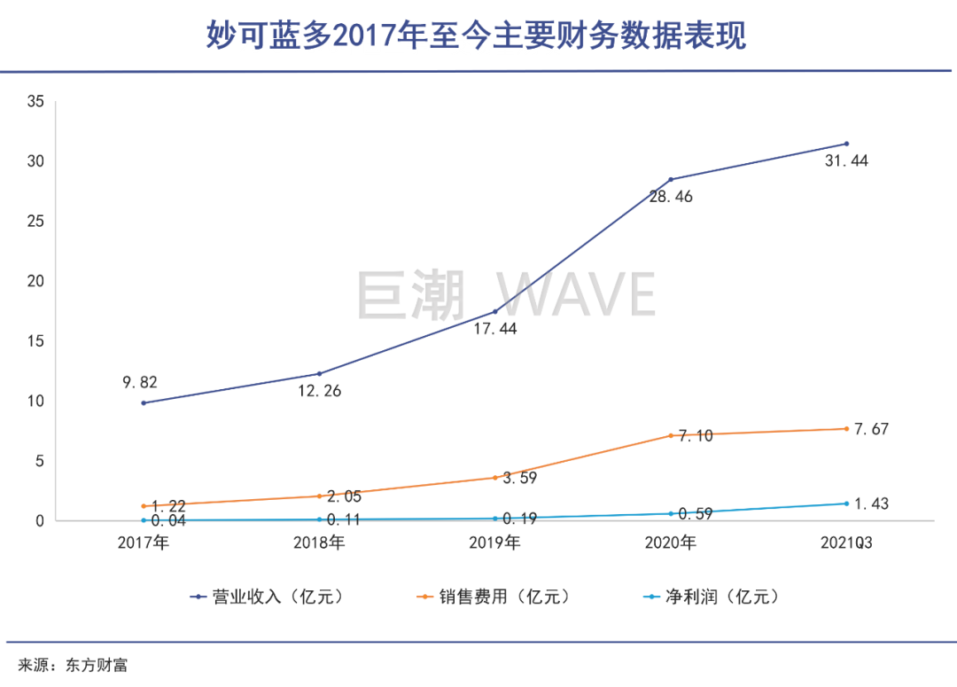 2019年至2021年三季度,妙可藍(lán)多的銷(xiāo)售費(fèi)用成本累計(jì)達(dá)到18.36億元,其中2018年至2020年,廣告促銷(xiāo)費(fèi)用分別高達(dá)1.05億、2.01億及5.6億元,占銷(xiāo)售費(fèi)用的比重從2018年度的51%上漲到了2020年的79%左右。